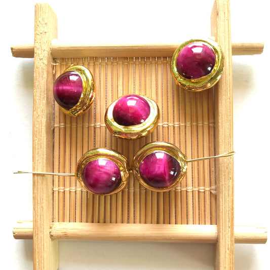 2-5-10pcs/lot 16.5*16mm Gold Plated Fuchsia Tiger Eye Spacers Focal Beads