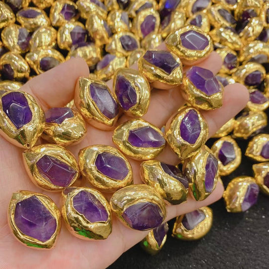 2-5-10pcs/lot Gold Plated Purple Amethyst Spacers Focal Beads