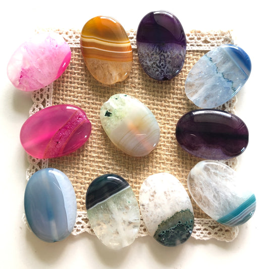 11pcs/lot 35*25mm Multicolor Banded Agate Oval Spacers