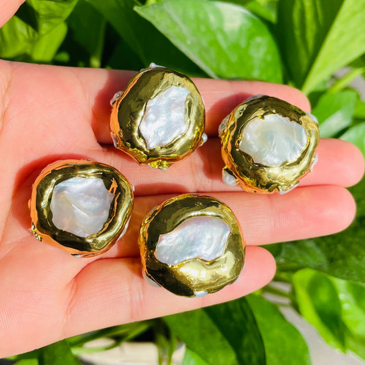 2-5-10pcs/lot Gold Plated Freshwater Pearl Spacers Focal Beads