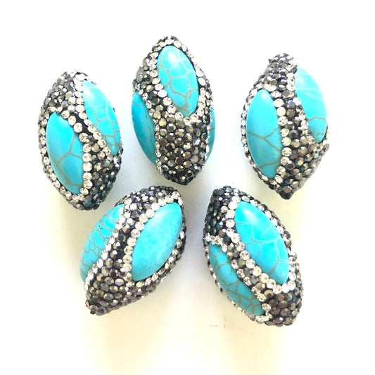5pcs/lot 30*19mm Rhinestone Pave Turquoises Gemstone Spacers Focal Beads