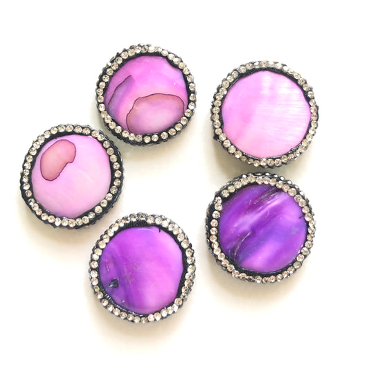 5pcs/lot 23mm Rhinestone Paved Purple Shell Round Spacers