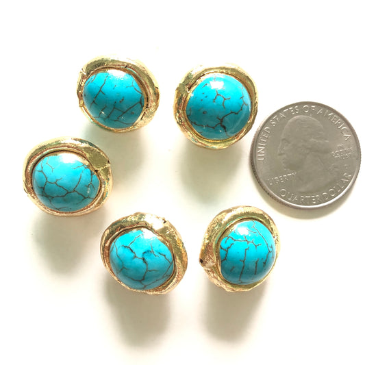 5pcs/lot 18.7mm Gold Plated Brass Bezel Howlite Turquoise Stone Round Spacers