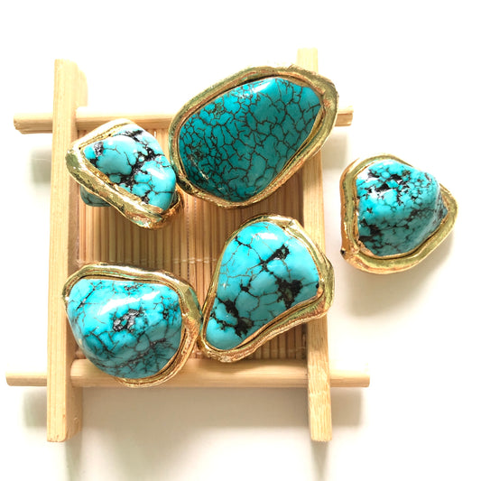 5pcs/lot 27-38mm Gold Plated Brass Bezel Howlite Turquoise Stone Irregular Shape Spacers