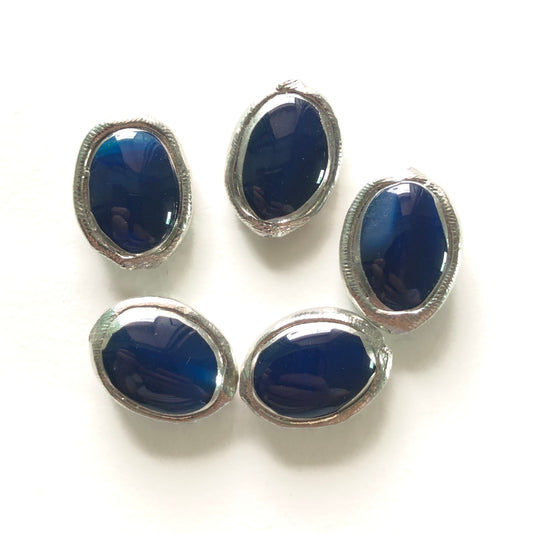 5pcs/lot 20*15mm Silver Plated Brass Bezel Navy Blue Agate Oval Shape Spacers