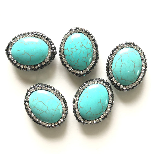 5pcs/lot 25.5*20mm Rhinestone Paved Turquoise Oval Spacers