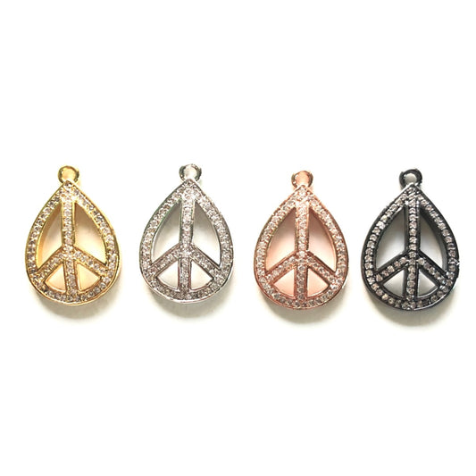 10pcs/lot 23*15mm Clear CZ Pave Peace Sign Charm Pendants