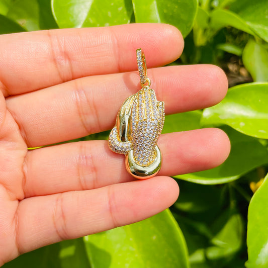 10pcs/lot 31*17mm CZ Paved Praying Hands Charms