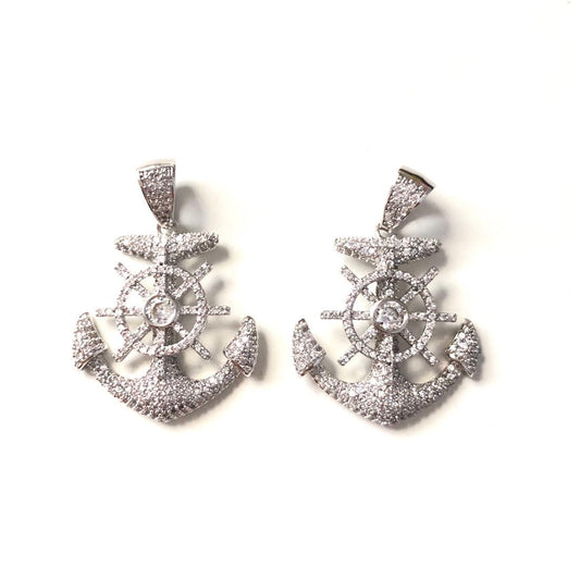 10pcs/lot 40*31mm CZ Paved Anchor Charms
