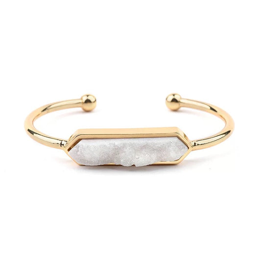 5pcs/lot Gold Plated Copper White Druzy Open Bangle for Women