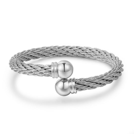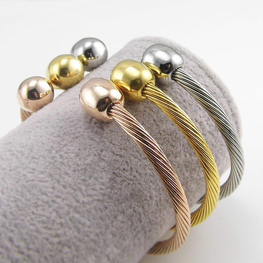 5pcs/lot Stainless Steel Round Ball Open Bangle for Women