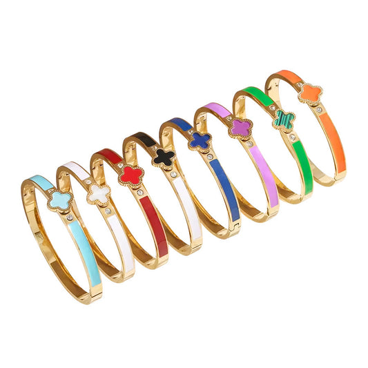 5pcs/lot Gold Plated Colorful Clover Stainless Steel Bangles for Women
