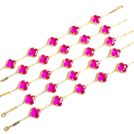 5-10pcs/lot Gold Plated Hot Pink Fuchsia Glass Clover Bracelets