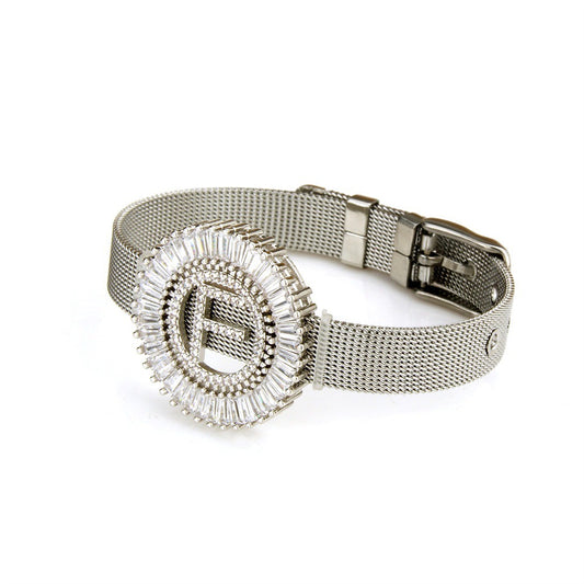 10pcs/lot CZ Paved Initial Alphabet Charm Stainless Steel Bracelet -Silver