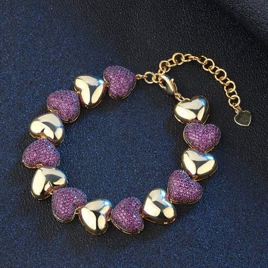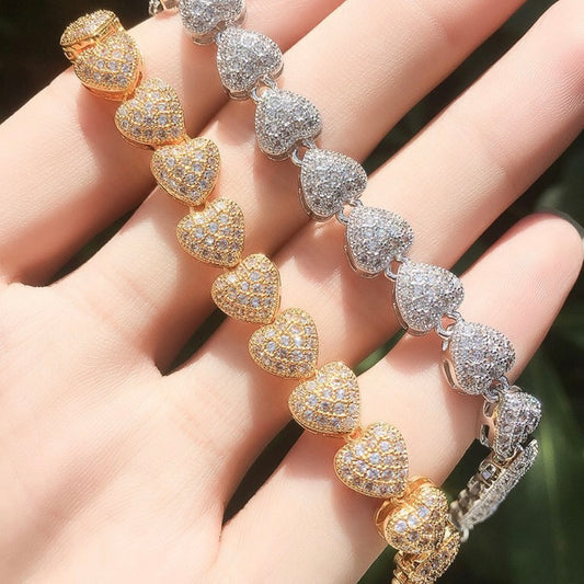 5pcs/lot Multicolor CZ Paved Heart Bracelet