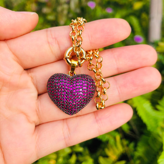 2pcs/lot CZ Paved Heart Chain Necklace + Bracelet Set