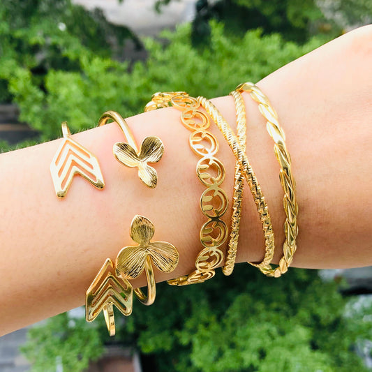 5pcs/lot Gold Plated Clover Stainless Steel Bangles for Women