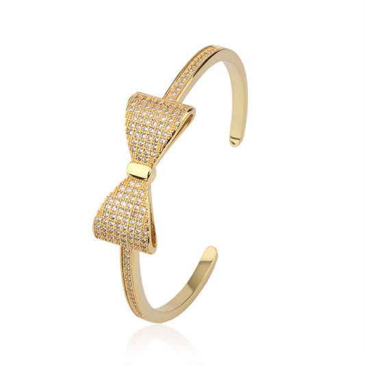 2pcs/lot CZ Paved Bow Tie Open Bracelet